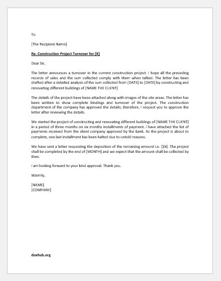Read Online SAMPLE LETTER TURNOVER CONSTRUCTION PROJECT Doc ManyBooks